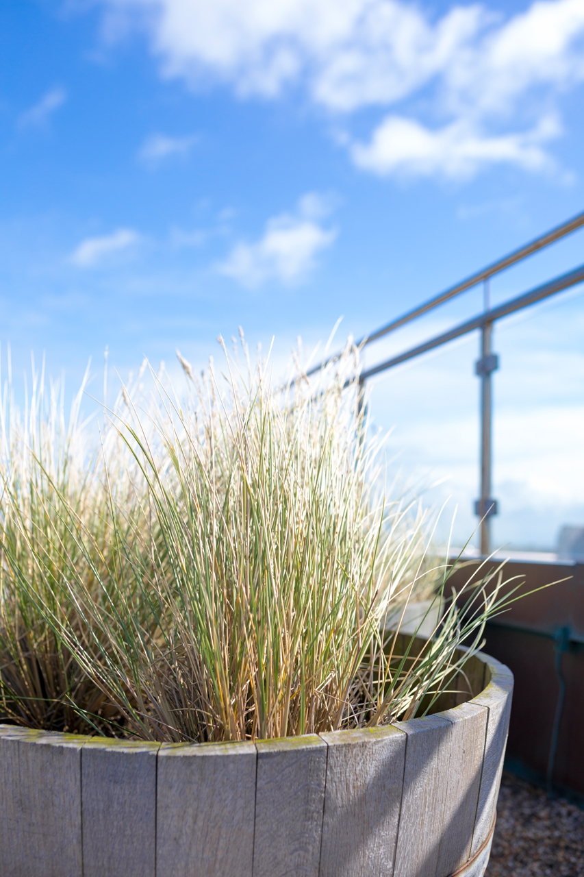Detail Bepflanzung der Dachterasse auf dem Strandhotel Germania au der Insel Noderney