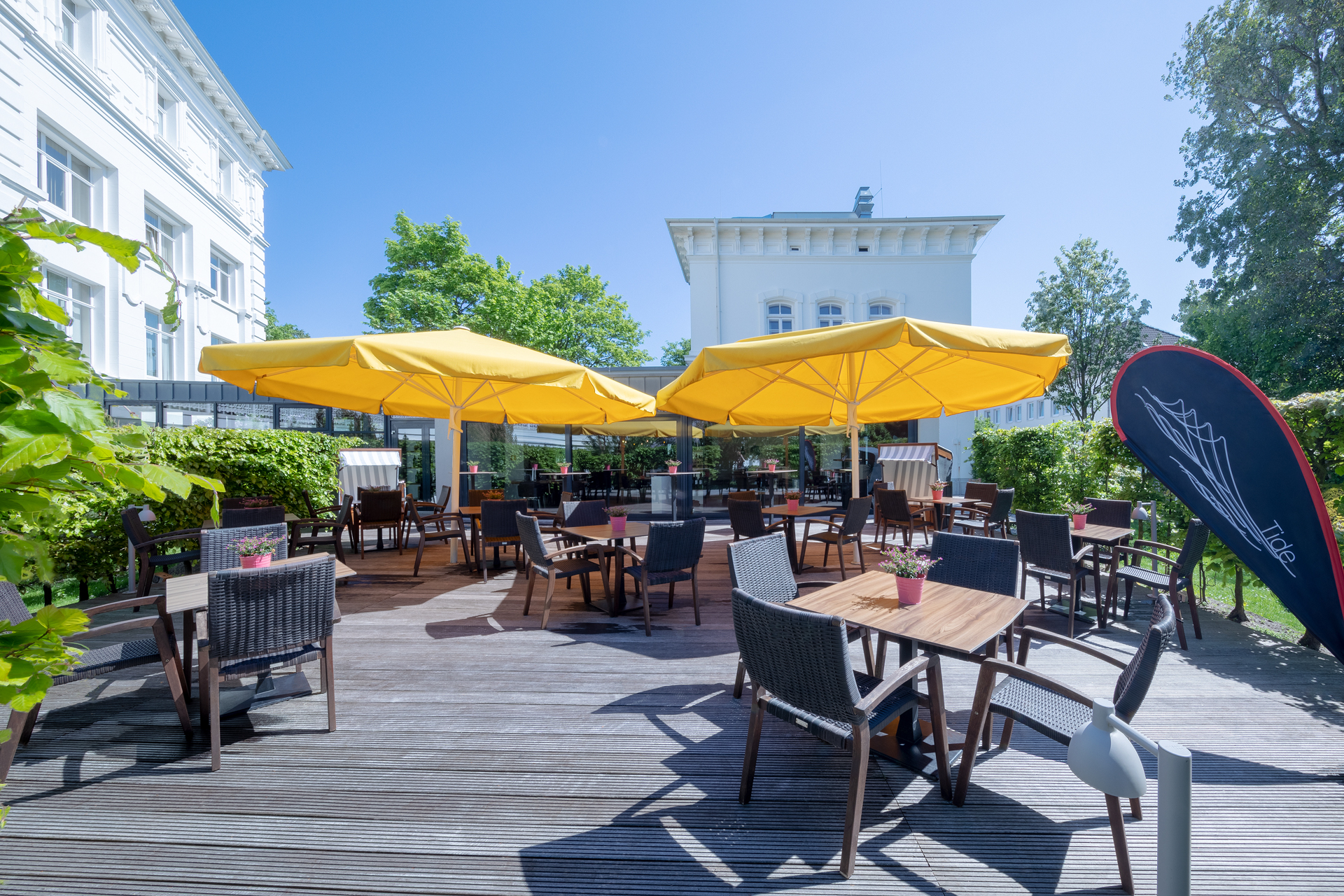 Die Terasse des Restaurants Tide im Thalasso Hotel Nordseehaus