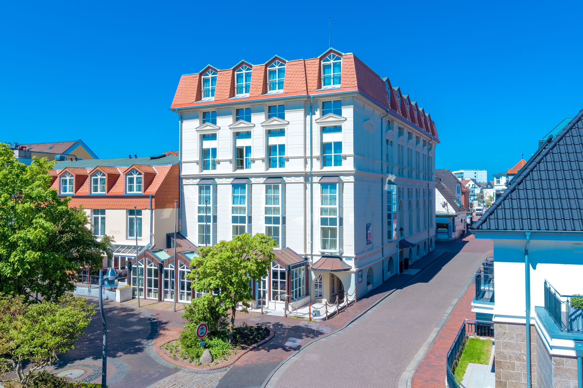 Ein sonniger Tag beleuchtet das Hotel Hanseatic auf Norderney