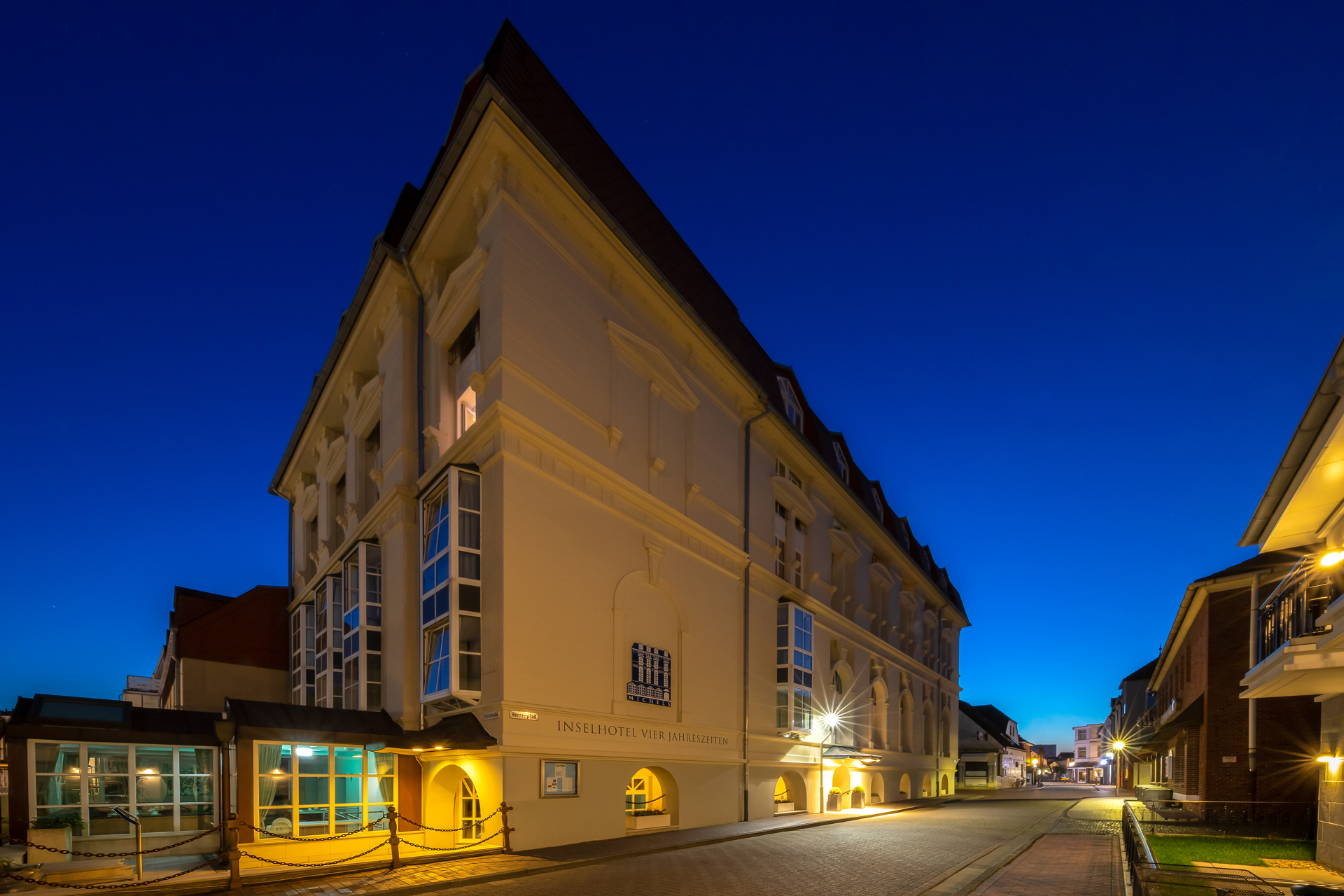 Außenansicht des Inselhotel Vier Jahreszeiten bei Nacht auf Norderney